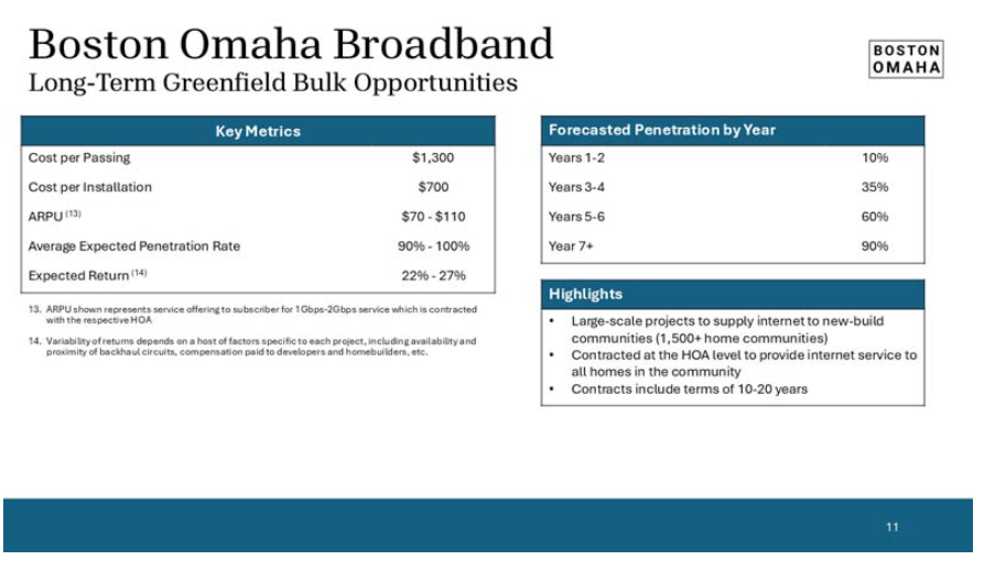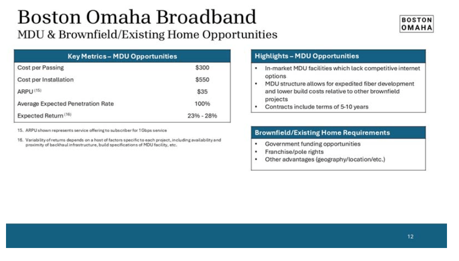 To better understand a business I find it helpful to break down the relevant unit (or project) economics. Here I looked at the project economics of 3 project types in Boston Omaha’s broadband segment. This exercise helped me to better understand future cash flows and management’s stated IRR figures.